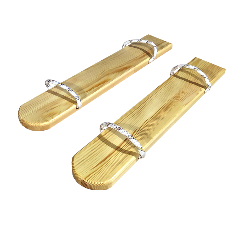 Парные лыжи-шагайки для эстафет 650х120х35 представляет собой одну пару лыж, изготовленных из массива сосны и установленными веревками-петлями для фиксации ног на двух человек. Поверхность лыж тщательно отшлифована и покрыта высококачественным трёхкомпонентным лаком в два слоя. Поставляются в собранном виде. Подробнее