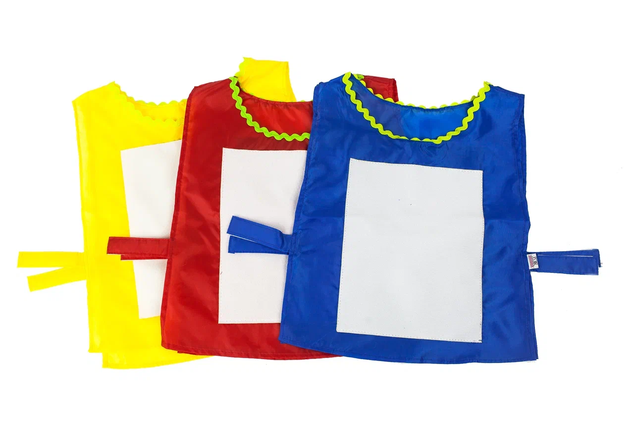 Комплектация: 1 жилет (синий, красный, желтый), 6 полос с липучкой на конце: по 2 штуки каждого цвета - синий, красный, желтый), застежка жилетов — липучка.