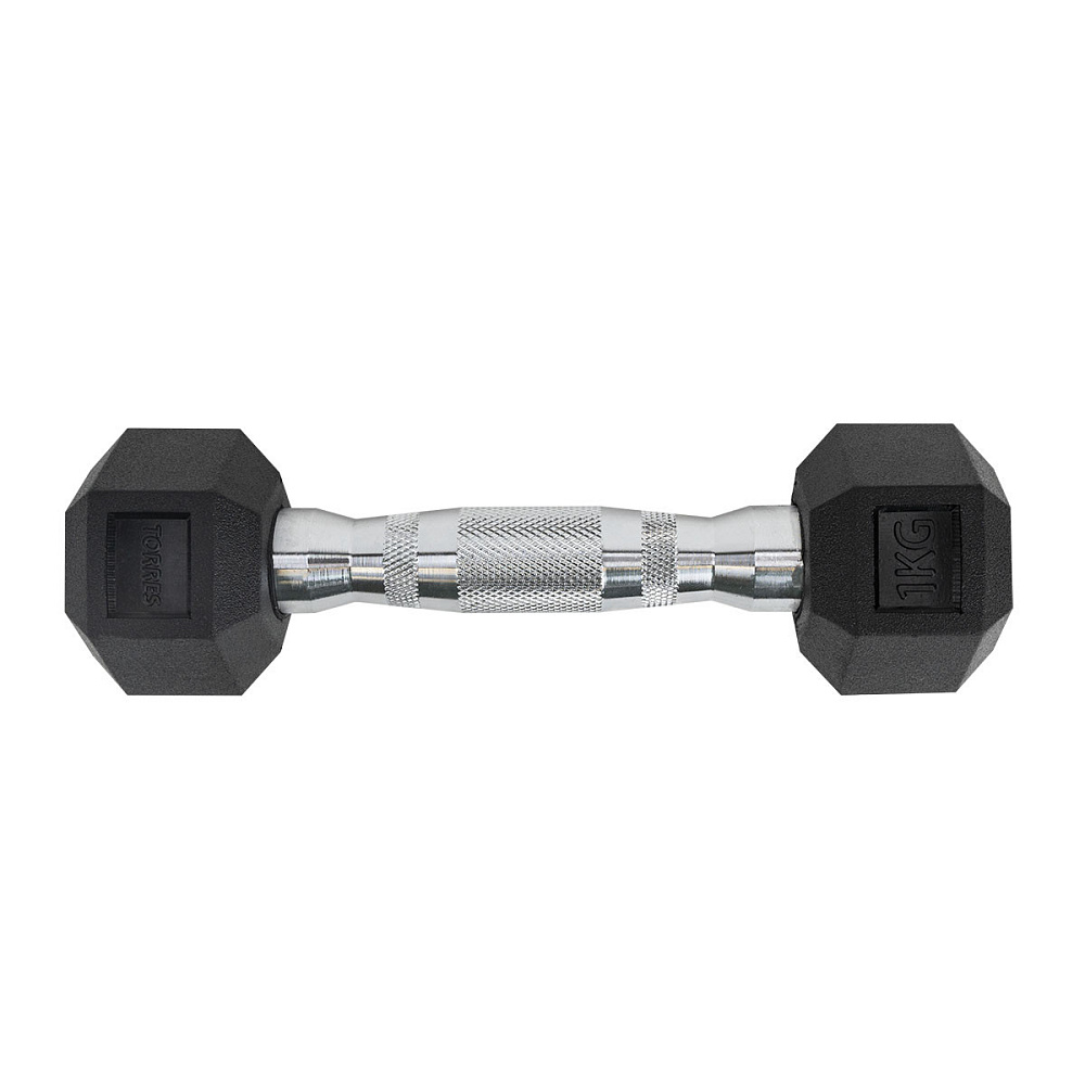 Металлическая, литая гантель TORRES 1 кг. Настоящие, профессиональные гантели для активных тренировок.