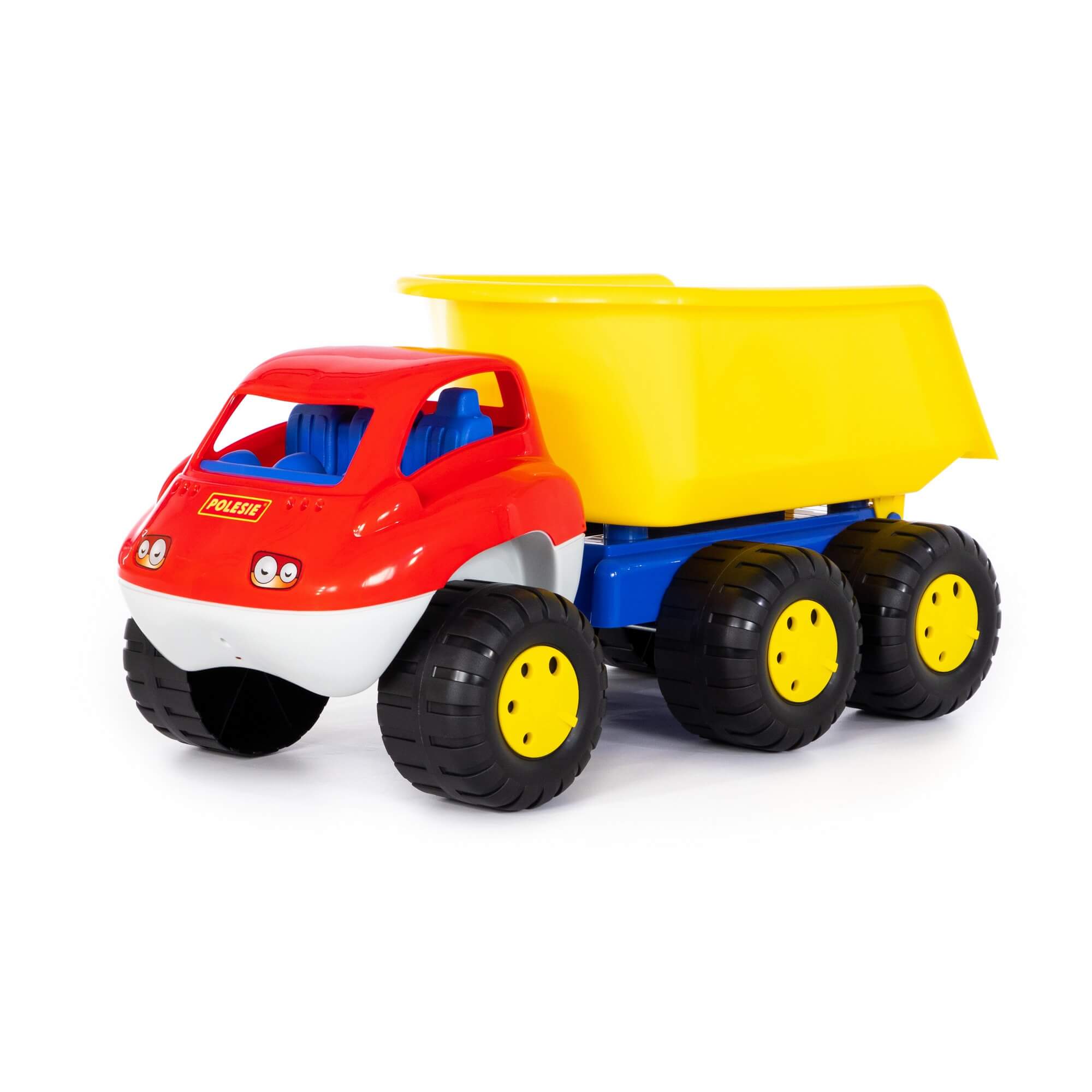 Автомобиль-самосвал серии Дакар с прицепом создан для детей старше 3 лет.