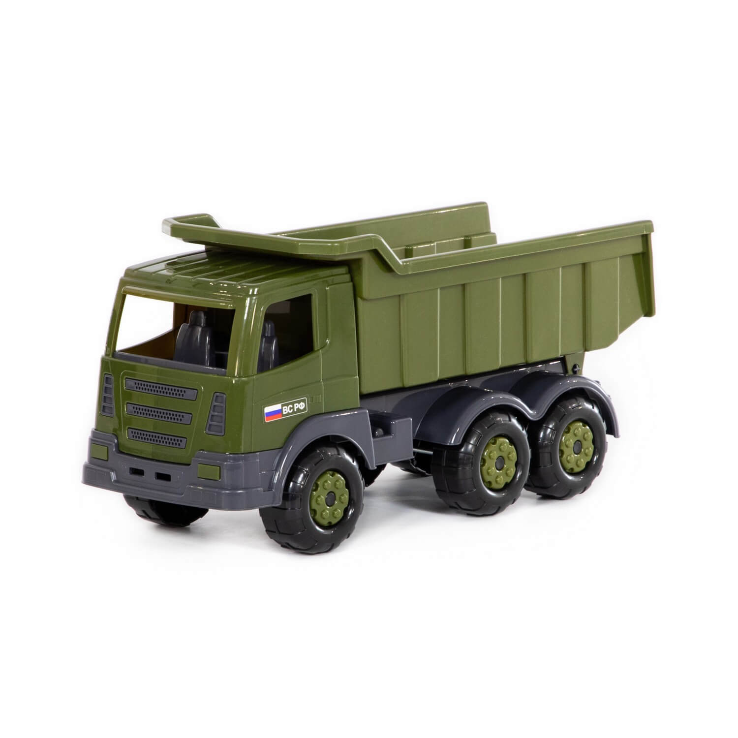 Военный автомобиль-самосвал из серии военных игрушек. Самосвал оборудован подвижным кузовом, что позволяет перевозить и выгружать различные грузы.