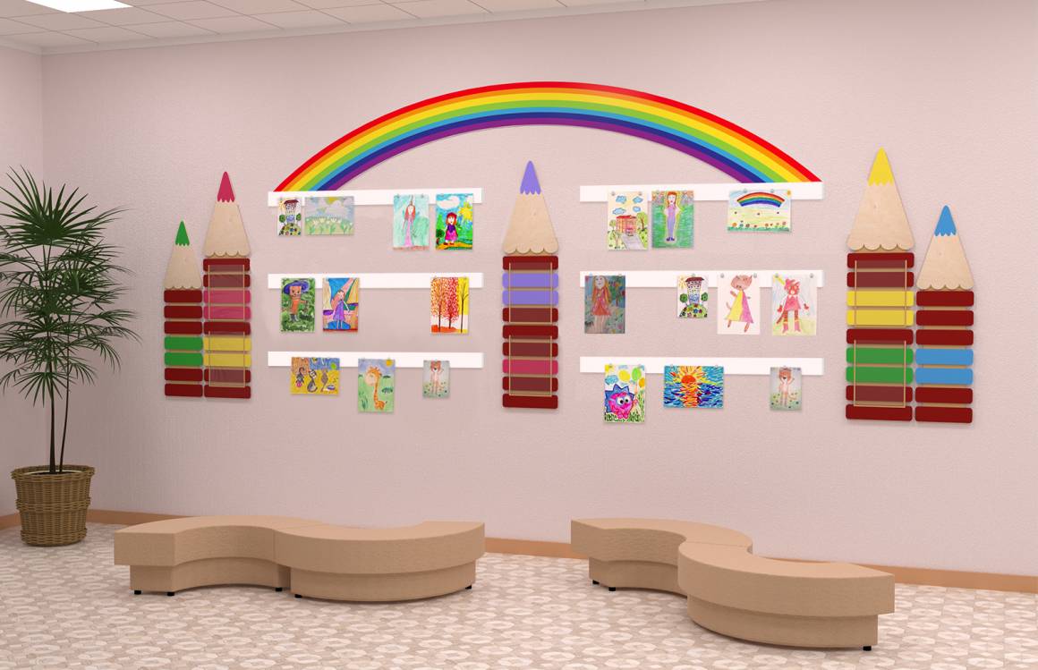 Комплектация : радуга (3 части), карандаши с двумя объемным карманами на каждом - 3 шт, карандаши маленькие - 2 шт, магнитные панели (100х7 см) - 6 шт