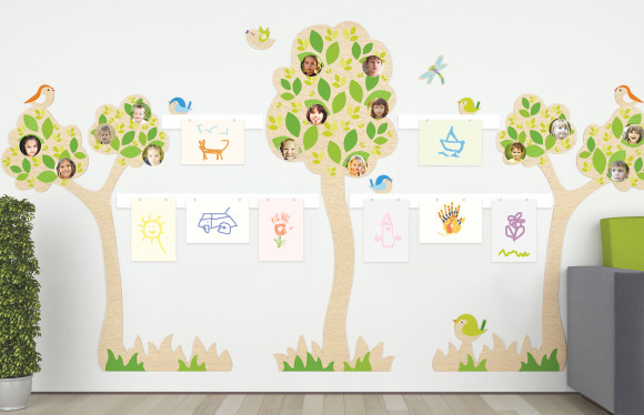 Комплектация : дерево большое, дерево маллое - 2 шт, магнитные панели (100х7 см) - 2 шт, магнитные панели (50х7 см) - 2 шт, птички малые - 5шт, птичка большая, стрекоза, прищепка (20 шт)