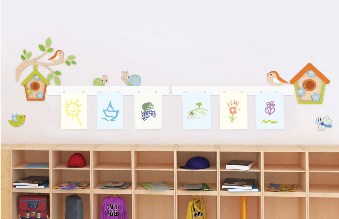 Демонстрационная система для организации выставки детских работ, фотографий, размещения информации и методического материала, которые надежно крепятся магнитами. Комплектация : магнитная панель (100х7 см) - 2 шт, скворечник, скворечник на ветке, улитка большая, улитка маленькая, стрекоза, птичка - 2 шт, магниты - 10 шт