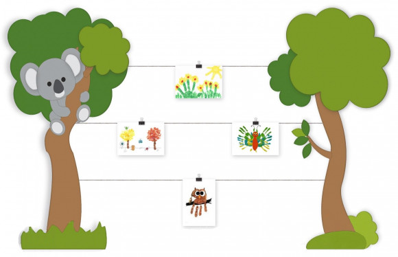 Яркие демонстрационные системы сочетают в себе и галерею для выставки детских рисунков или размещения информации и декор помещения.