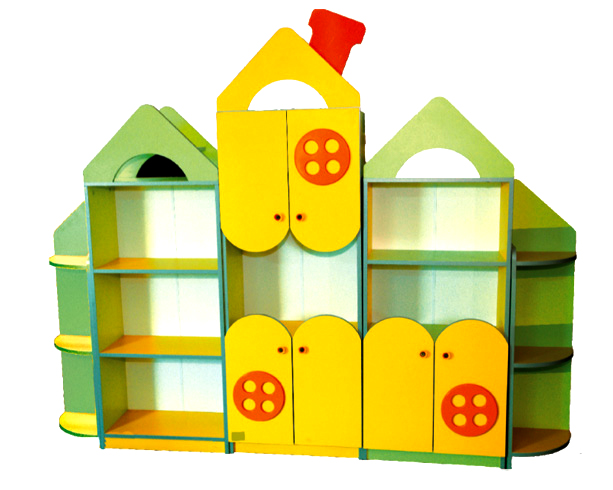 Стенка «Дом». Выполнена из ламинированной ДСП (ЛДСП) 16 мм, края обрамлены кантом ПВХ 2 мм, фасады и декорации выполнены из МДФ. Цвет на выбор. Возможно изготовление с фотопечатью.