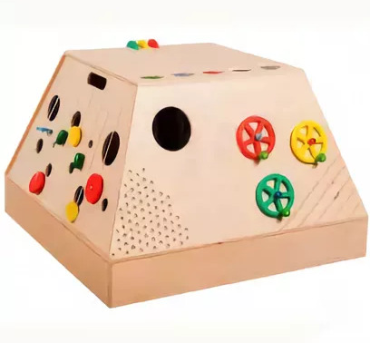 Комплекс предназначен для развития у детей тактильных ощущений, мелкой моторики, осязательных навыков. Сам корпус выполнен из дерева, к которому крепятся пластмассовые элементы, а также детали с ковровыми, алюминиевыми и зеркальными покрытиями.
