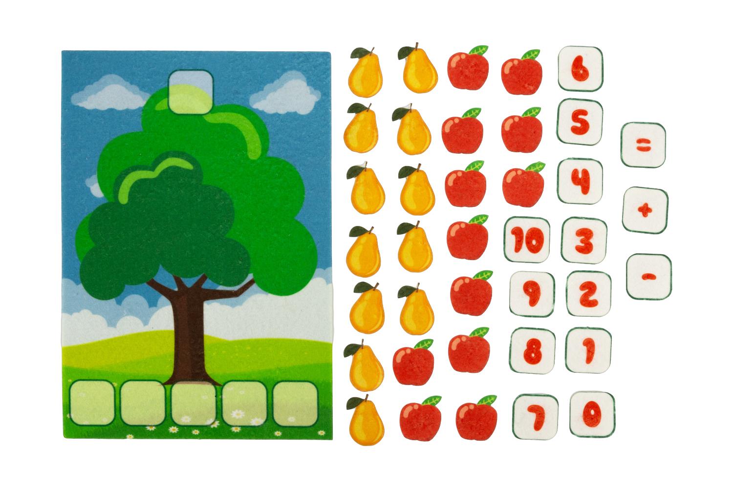 Игровое поле с карманом 28*20см, фигурки яблочек, груш, цифр.