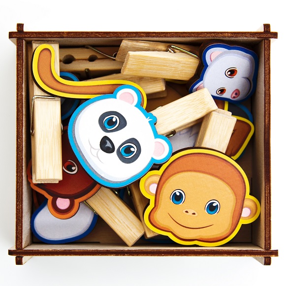 Игра с прищепками Собери дикое животное №3 изготовлена из дерева – экологически чистого и гипоаллергенного материала.