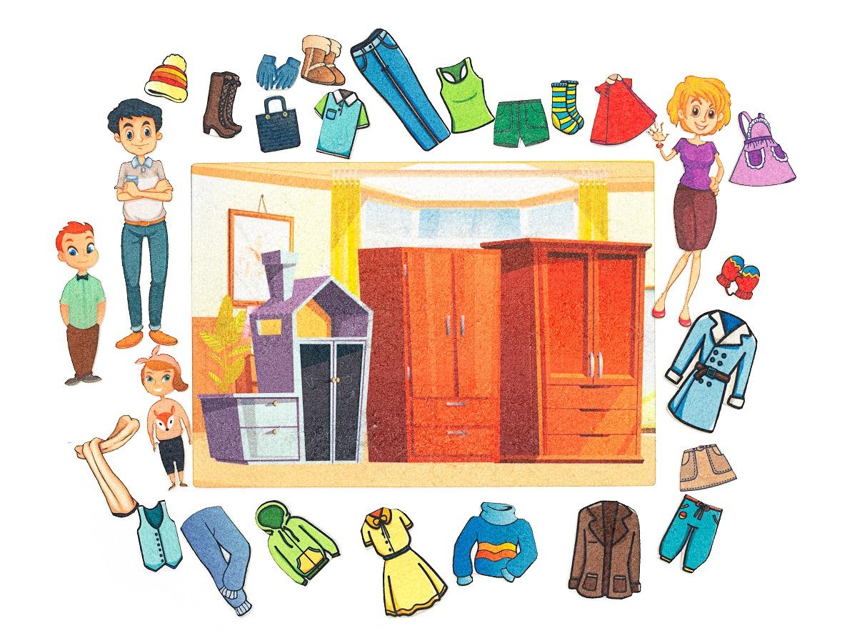 Игровое поле с карманом 28*20см, фигурки людей, одежды. Фигурки на липучках.