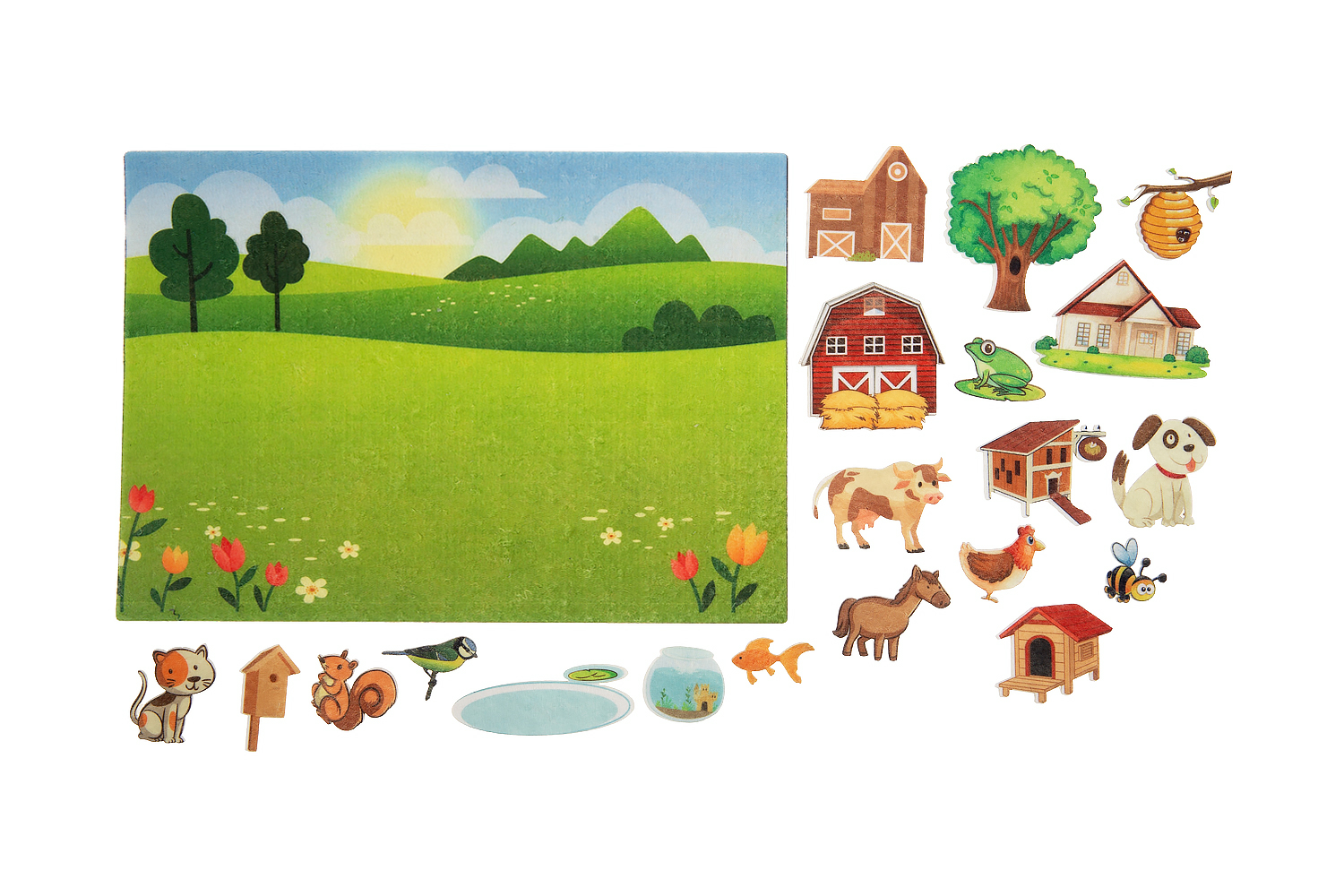 Игровое поле с карманом 28*20см, фигурки животных, фигурки домиков.