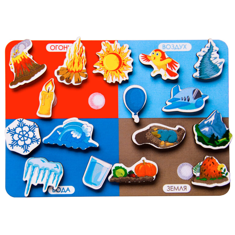 Складывать фигурки на панель, в соответствии с сектором. Расскажите ребенку о четырех стихиях. Огонь. Он горячий, может и согреть и обжечь. Найдите вместе предметы, относящиеся к этому сектору. Подобным образом расскажите так же и о других стихиях. Придумайте волшебную сказку о четырех стихиях, которые помогают людям.