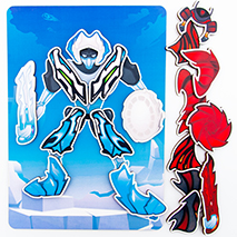 Взрослый предлагает ребенку рассмотреть трансформера и защиту, собрать Ледяного тренформера и Огненного трансформера Ребенок отбирает предметы защиты и оружие, называет их и прикрепляет к липучке.