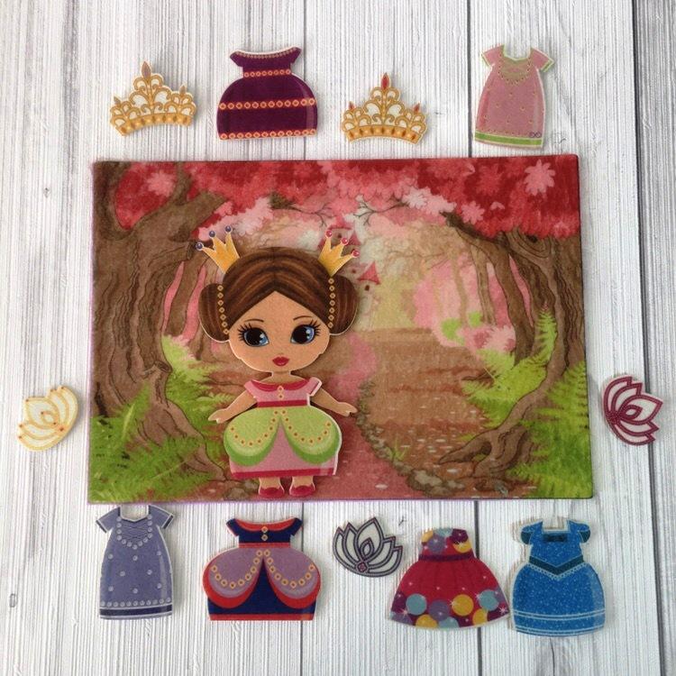 Игровое поле с карманом 28*20см, принцесса, платья и короны. Фигурки от 2*2см до 14*9см.