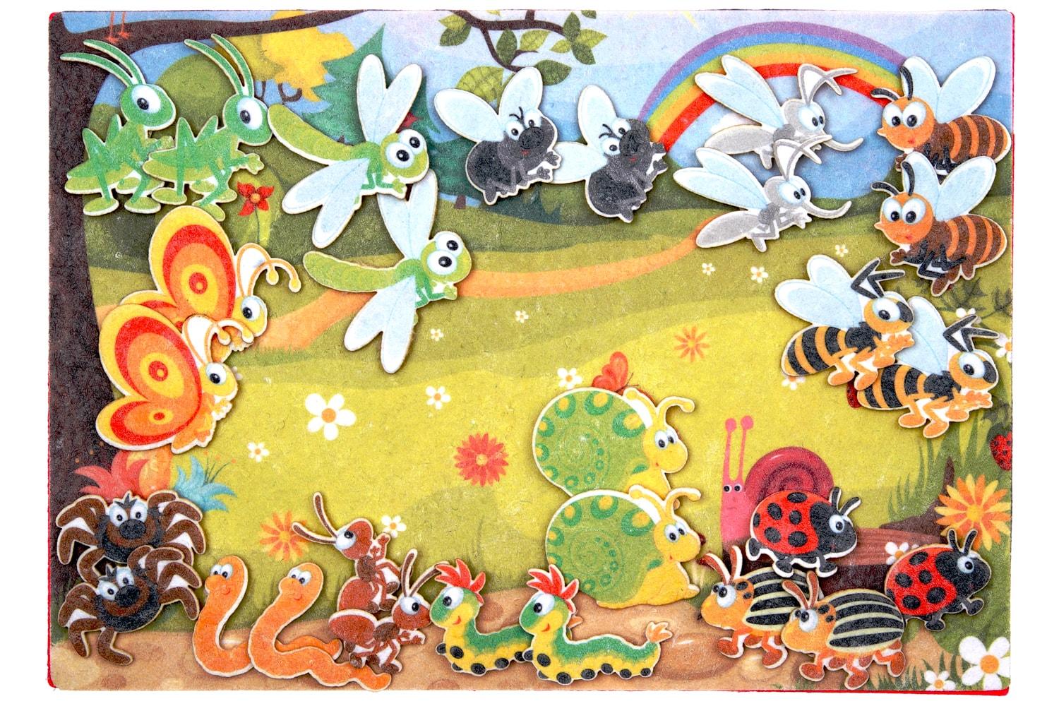 Игровое поле с карманом 28*20см, фигурки насекомых. Фигурки от 2,5*3см до 5*5см