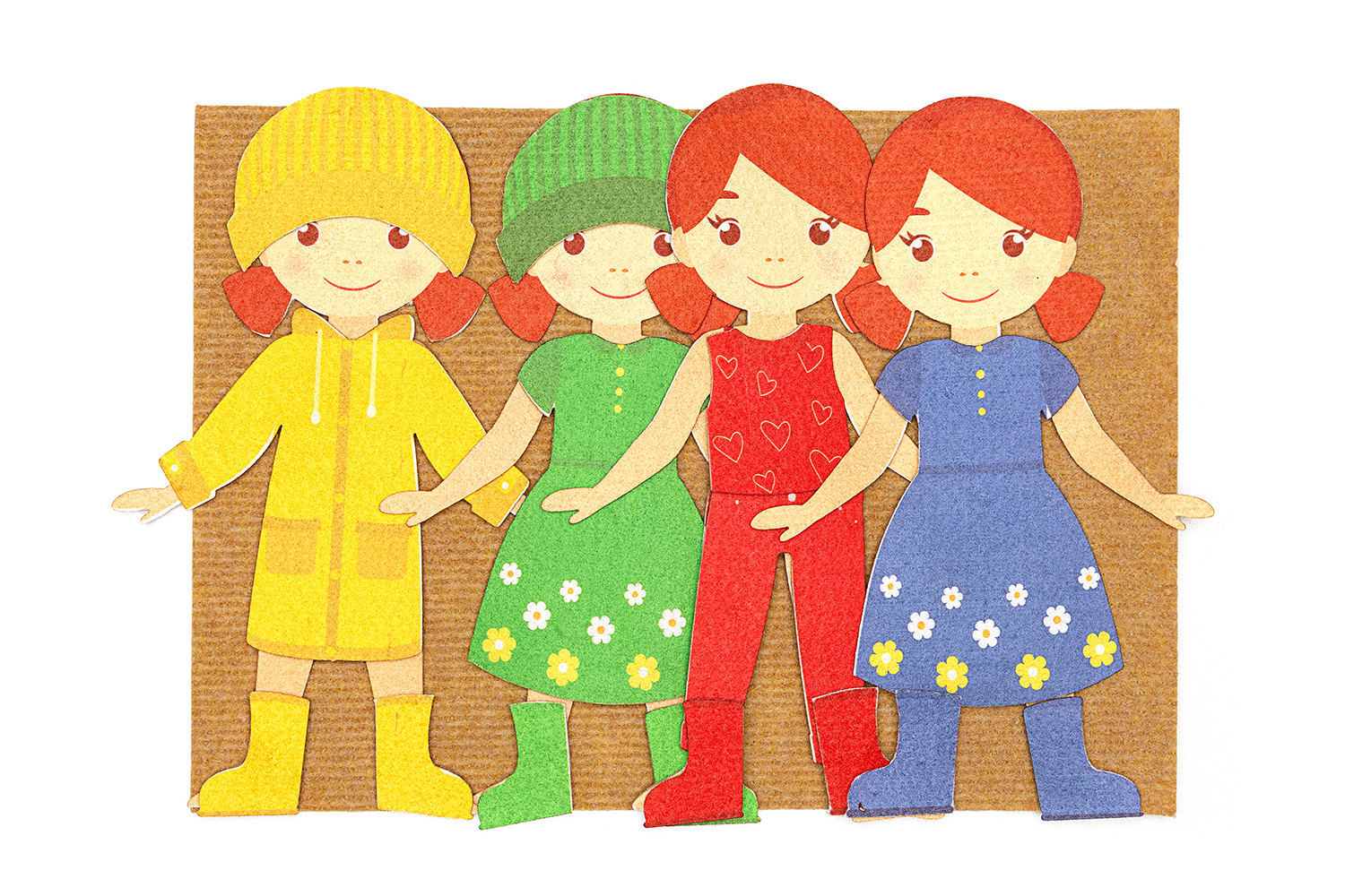 Игровое поле 25*35см, 4 комплекта одежды и 4 девочки высота 25см. Фигурки на липучках.