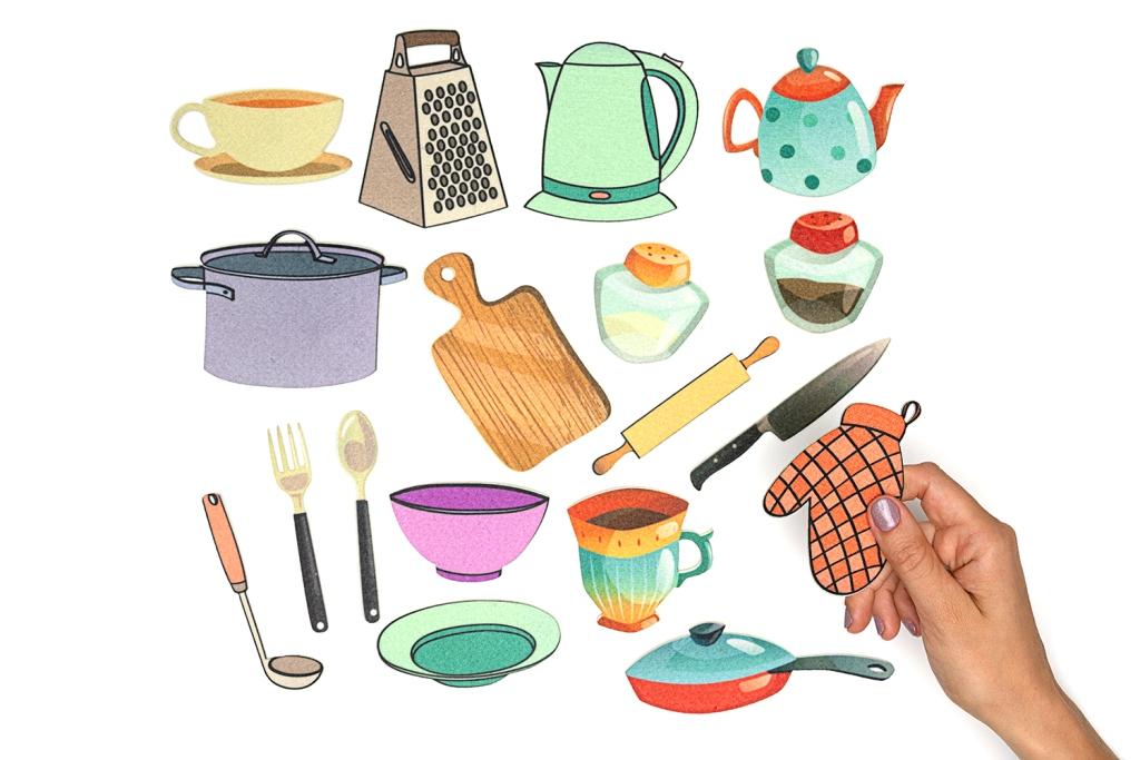 Фигрурки посуды на липучках от 11*2см до 12*6,5см