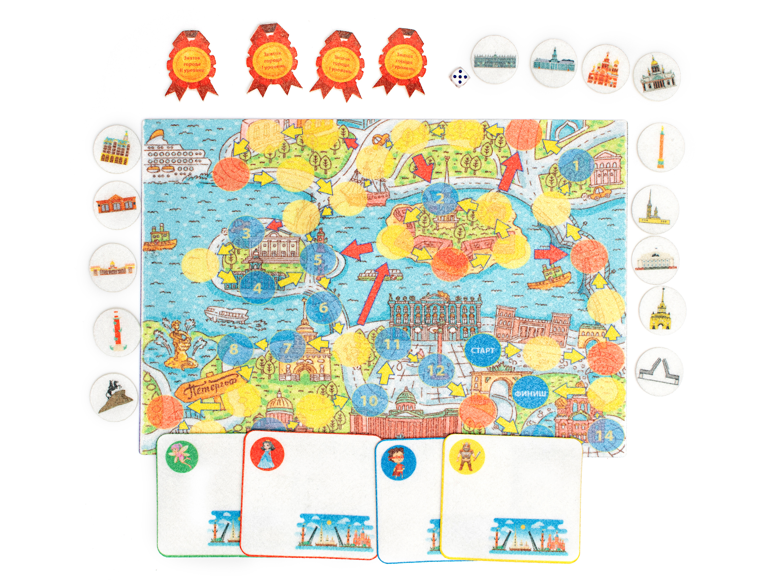Игровое поле с карманом 28*20см, фишки - 25, корзина - 4, кубик - 1. Фигурки на липучках. Размеры от2,5х2,5см до 9х8см