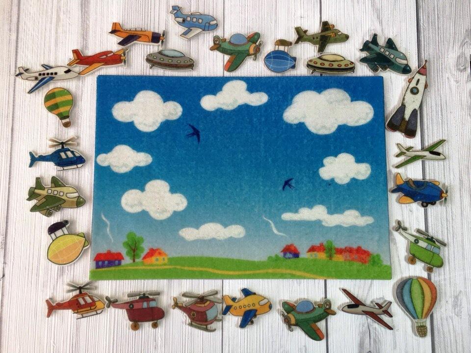 Игровое поле с карманом 28*20см, воздушный транспорт. Фигурки от 4*3см до 7*3см