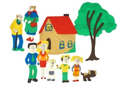 Игровое поле 25*35см, мальчик, девочка, младенец, мама, папа, дедушка, бабушка, дом, дерево, собака. Фигурки от 4*7см до 20*28см.