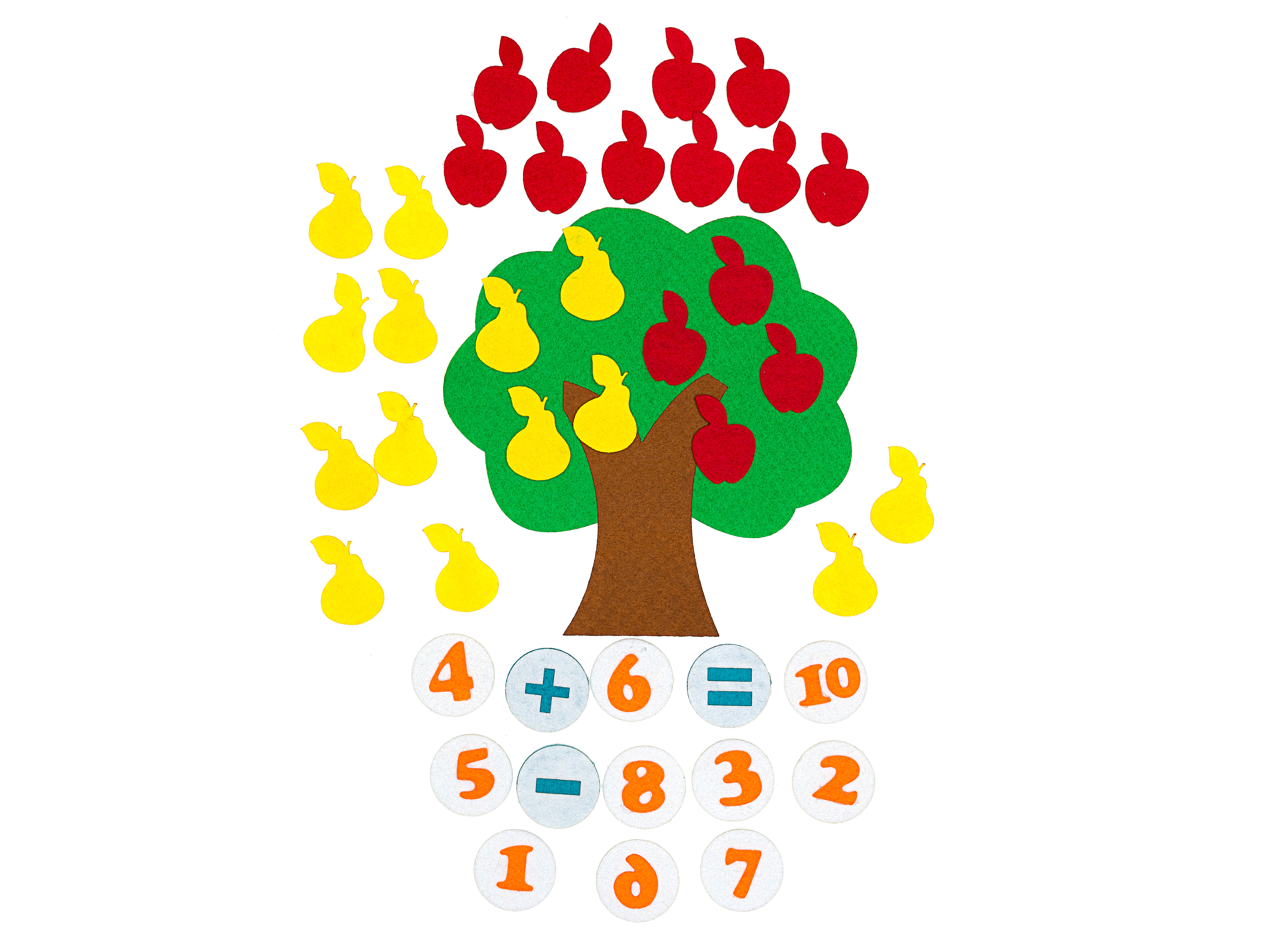 Игровое поле 28*20см, фигурки яблочки, груши, цифры, знаки, дерево.