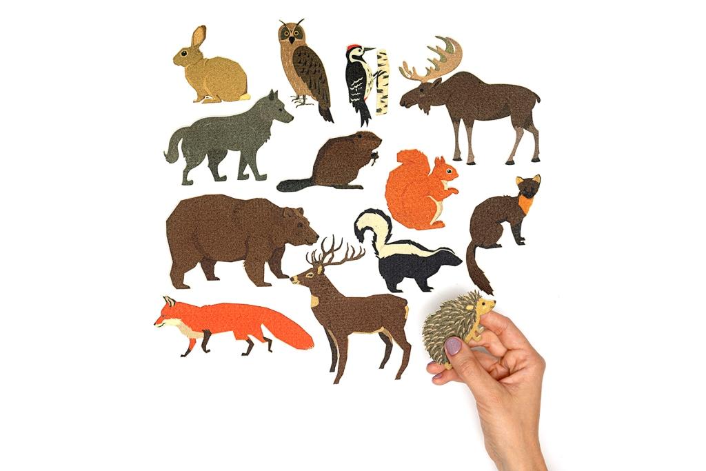 Фигрурки лесных животных на липучках от 7*4,5см до 9*14,5см