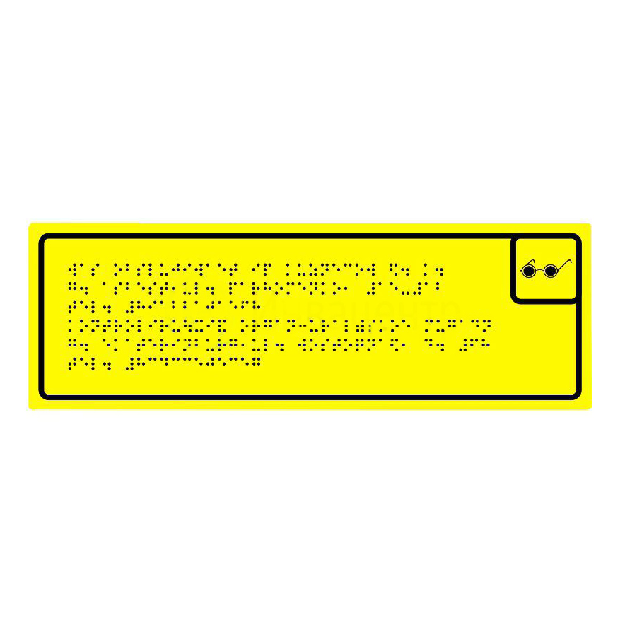 Тактильная табличка шрифтом Брайля 100x300 мм является универсальным средством информирования слепых и слабовидящих людей внутри помещения. С помощью табличек указываются названия кабинетов, помещений и других функциональных зон здания исключительно шрифтом Брайля без дублирования текстом.
