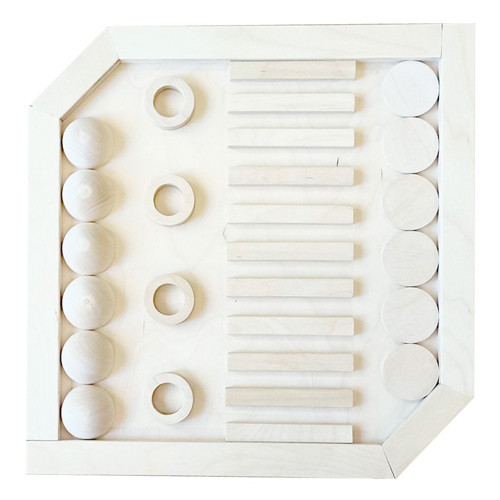 Материал: фанера, лак акриловый, различные фигуры из фанеры и массива липы: полусферы, бублики, палочки, цилиндры.