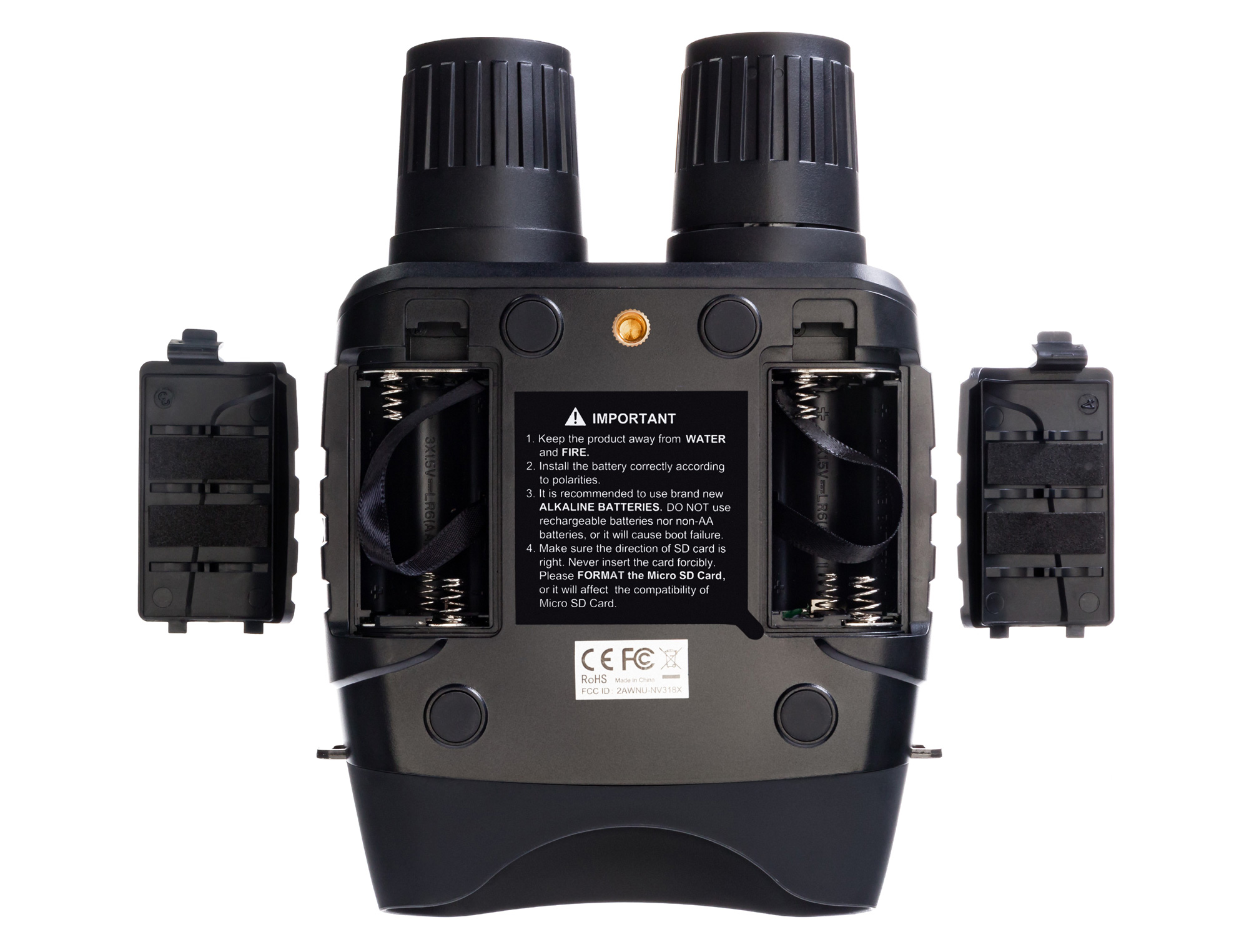 Корпус бинокля имеет эргономичную форму, поэтому удобно ложится в руку. Прибор также не боится брызг воды. Для управления используются всего шесть кнопок, поэтому работать с ПНВ очень легко – все нужное находится под рукой. Для питания нужны стандартные батарейки или никель-металлогидридные аккумуляторы типа АА, которые можно приобрести практически в любом магазине. Одного комплекта хватает на 4–10 часов непрерывной работы (длительность работы зависит от интенсивности использования ИК-подсветки).