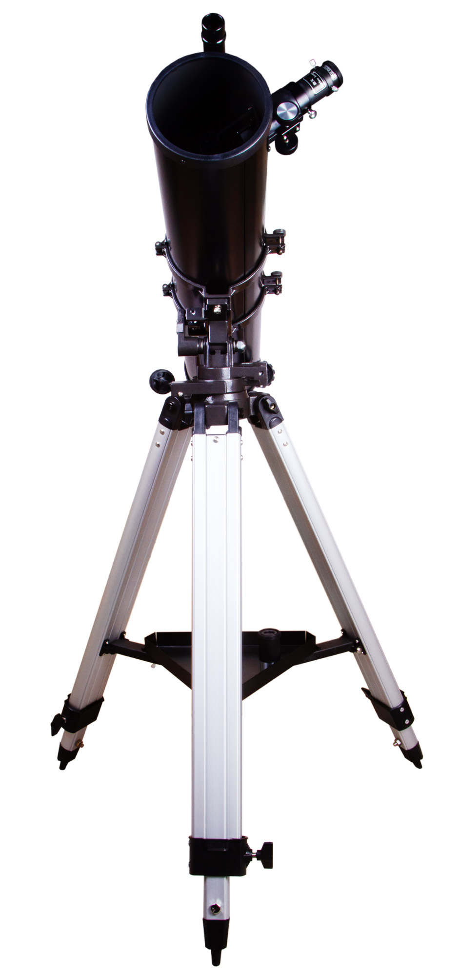 Телескоп комплектуется азимутальной монтировкой. Для наведения на объект нужно лишь развернуть оптическую трубу в нужную сторону. Благодаря простому управлению Skyline BASE 110S понравится тем, кто только делает первые шаги в исследовании космоса и ищет легкий в освоении телескоп. Монтировка устанавливается на алюминиевую треногу, высоту ножек которой можно регулировать. Есть лоток для аксессуаров.