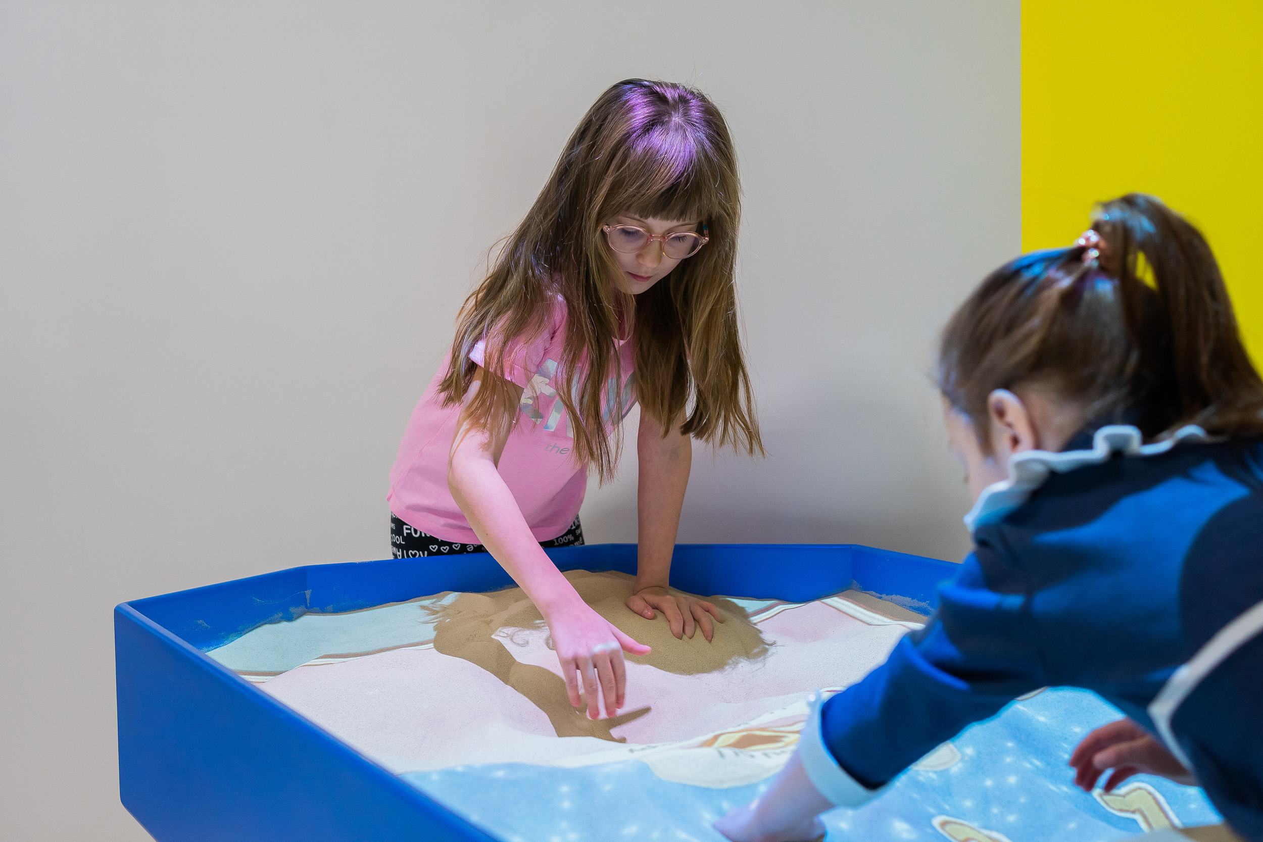Это развивающий комплекс, который объединяет в себе возможности интерактивной песочницы и сенсорного стола. Технология дополненной реальности превращает обычный песок в земную поверхность с озёрами и горами, вулканами и долинами. Дополнительные панели позволяют проводить занятия в режиме сенсорного стола.