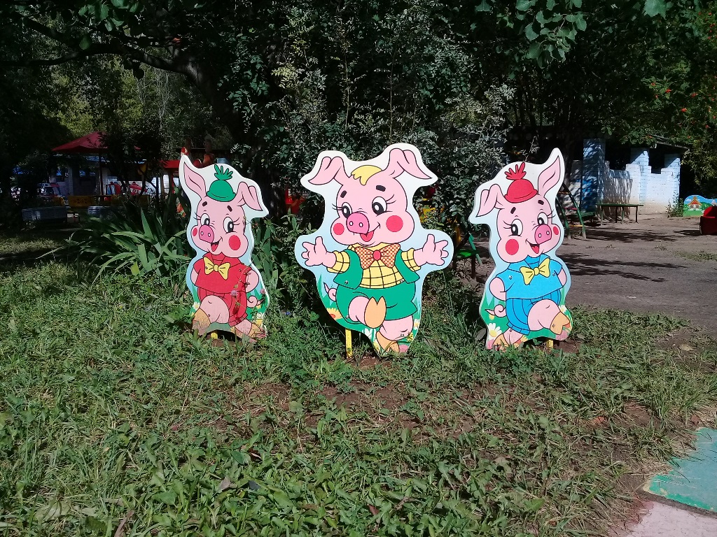 Композиция уличных фигур "Три поросенка" выполнена из ПВХ с нанесением полноцветного рисунка, покрытого защитной пленкой. Используемые материалы безопасны и устойчивы к атмосферным воздействиям, а конструкция гарантирует долговременное использование.