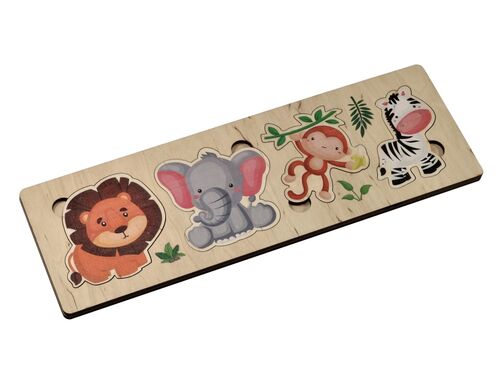 Деревянный пазл «Африканские животные» — это простая развивающая игра для малышей от 3-х лет.