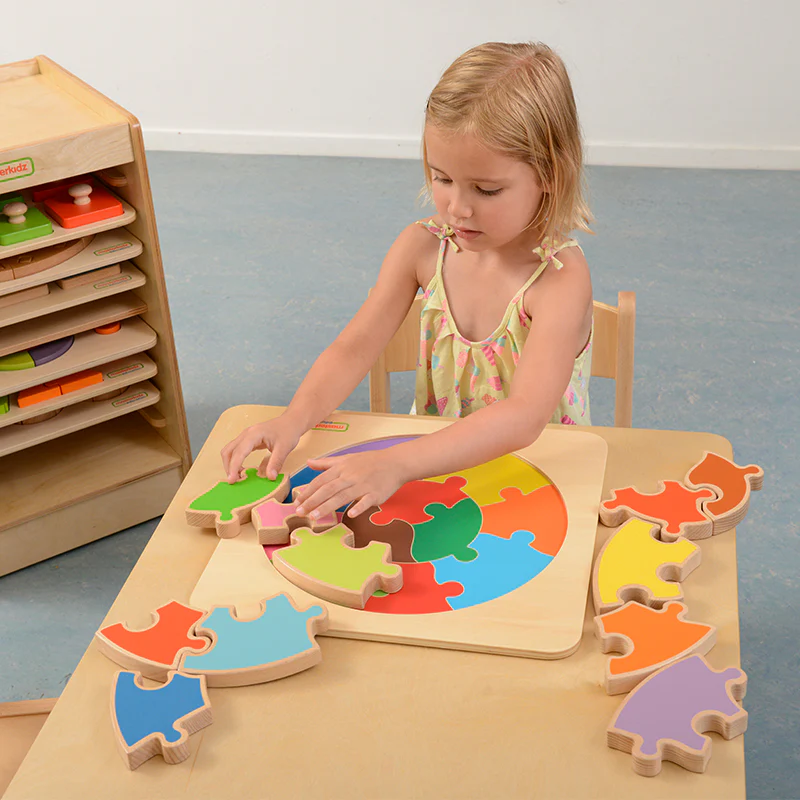 Панель состоит из цветных элементов (пазлов), которые в собранном виде представляют круг.
