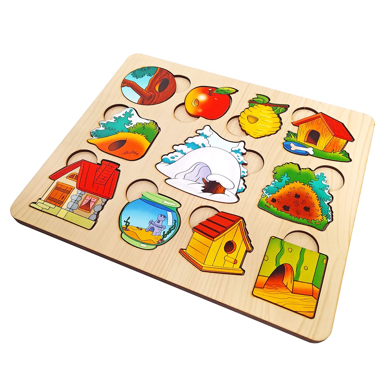 Рамка-вкладыш 2 слоя "Где чей домик?" 22 деталей