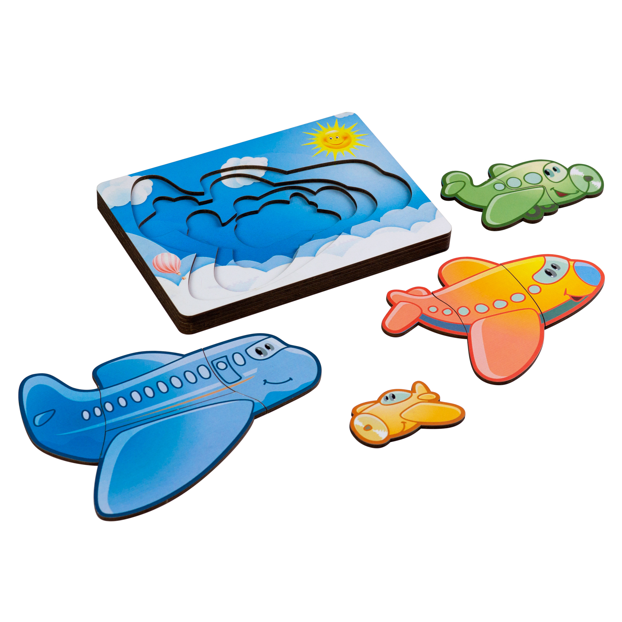 Вкладыши многослойный Самолетик изготовлены из дерева – экологически чистого и гипоаллергенного материала.