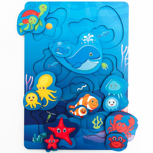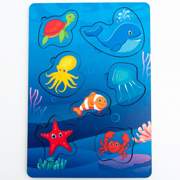 Вкладыши Морские обитатели изготовлены из дерева – экологически чистого и гипоаллергенного материала.
