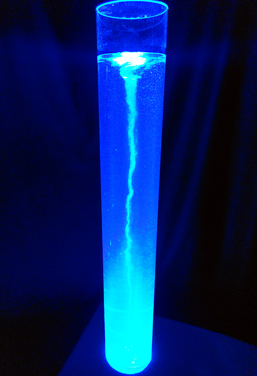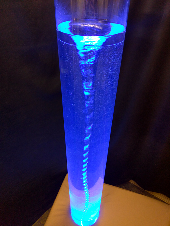 Напольная колонна с эффектом торнадо или водоворота. Прозрачная труба из небъющегося акрила, производство Германия. Основание, где скрыта вся начинка, металлическое, окраска промышленная порошковая, края скруглены. При необходимости, изделие можно дополнить мягким кожухом с жесткой рамой, обитой поролоном и окантованой экокожей. При включении создается завораживаются водяная воронка или вихрь из пузырей воздуха (в зависимости от выбранного режима)