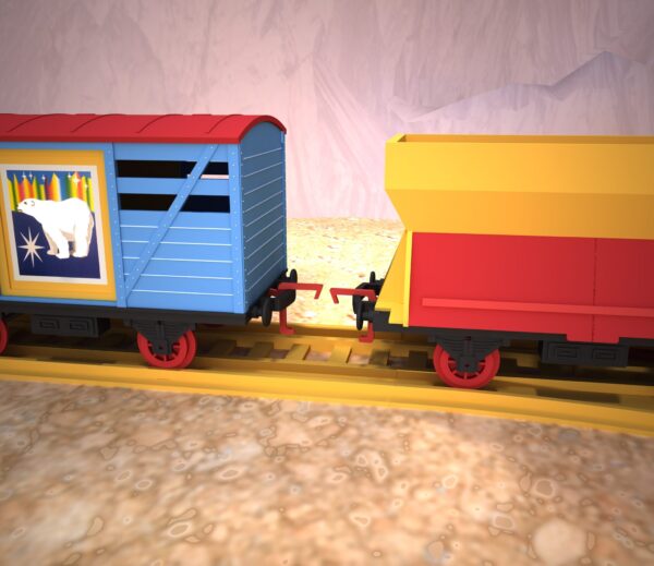 Игрушка состоит из рельс железнодорожного пути, стрелка без перевода и стрелка с переводом, паровоз и два вагона — «Зоо-вагон» с открывающимися дверцами для перевозки зверюшек и «Сыпучий» вагон для перевозки различных грузов. Питание электропривода паровоза осуществляется от трёх последовательно соединённых элементов типа АА. Элементы питания в комплект игрушки не входят. Подробнее